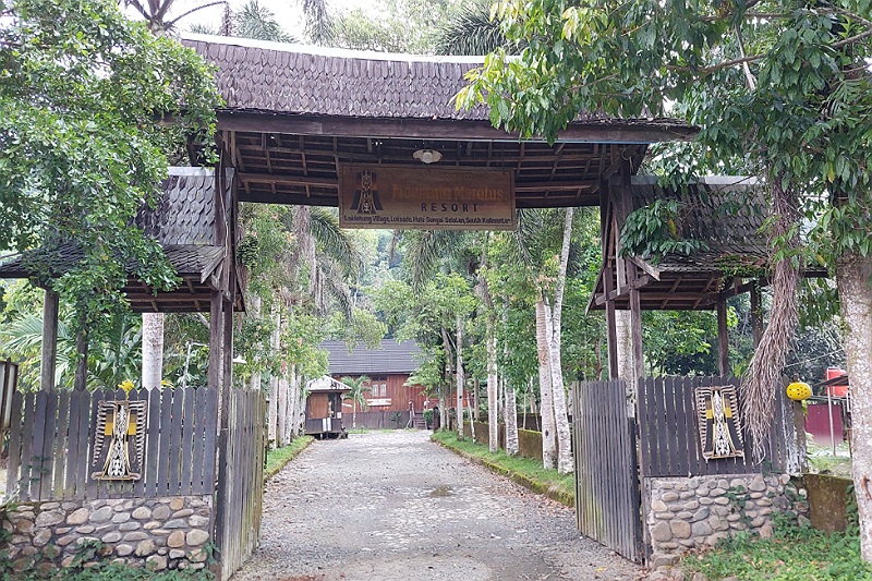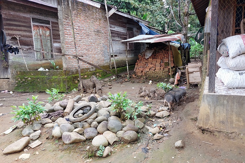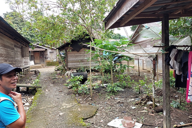 We lopen door het Dayak dorpje.