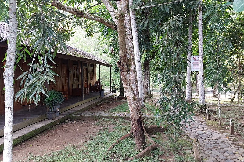Vanaf dit dorpje lopen we de jungle in met eerst een stukje bos met rubberbomen en veel bamboe. Goed zichtbaar is dat de bewoners van het dorpje hier gebruik van maken en hier deels middelen van bestaan vinden.