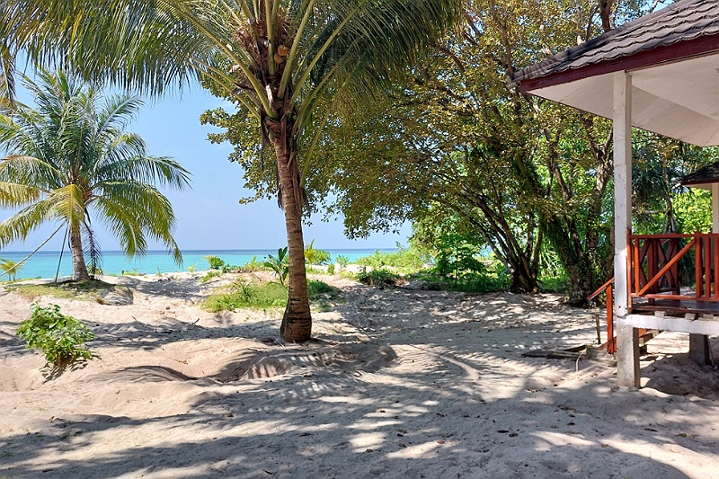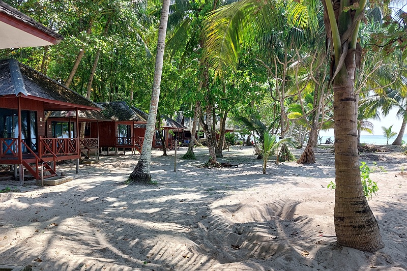 Via een droge route lopen we terug naar ons huisje en, na mijn sandalen buiten te drogen te hebben gezet, liggen we vijf minuten later weer plat.