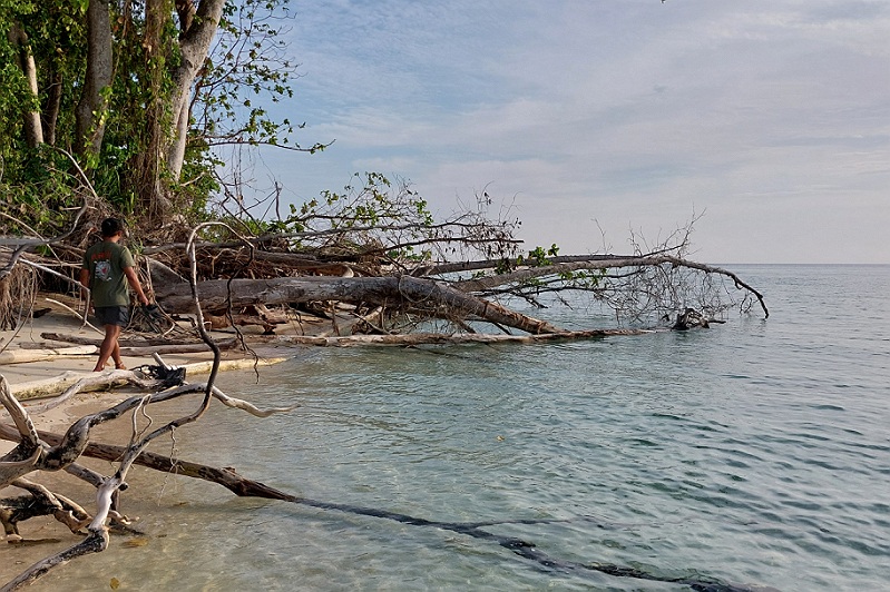 Tweede helft van de middag ga ik met Rickey een rondje om het hele eiland maken. Daar moet je je niet te veel van voorstellen, normaal heb je hier zo'n dertig minuten voor nodig, zo klein is het eiland. Maar door drijfhout, omgevallen bomen op de oever en dichte begroeing hier en daar werd het een kruip door, sluip door met klimwerk, door het water lopen etcetera.
