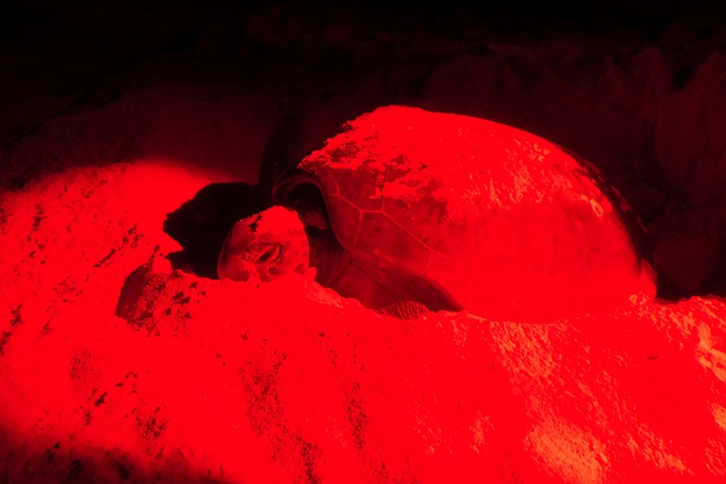 Zo moe als we zijn, zo vast als we slapen, om 23:45 uur worden we weer gewekt voor de schildpadden op het strand. We lopen naar een dier dat zo'n honderd meter van ons vandaan eieren aan het leggen is. Balen, maar we lopen in het donker per ongeluk even door het water, dus ik heb meteen drijfnatte sandalen. Als die morgen maar droog zijn.