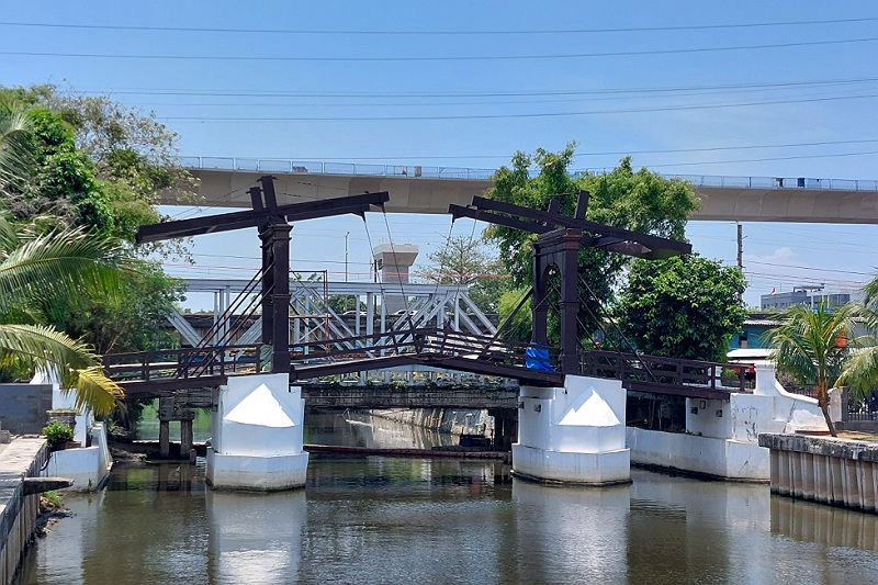 We nemen zowat een uur de tijd voor het ontbijt waarna we naar de kamer lopen en heerlijk wat relaxtijd voor onszelf nemen. Ramatours heeft ons een lijstje gestuurd met leuke plekken die we kunnen bezoeken maar wij kiezen voor lekker niks doen. Alhoewel we toch even een blokje om lopen en onderweg in een kleine shop wat flesjes water kopen. De enige bezienswaardigheid die we zien is de Jembalan Kota Intan ophaalbrug over de Grote Rivier, wat eigenlijk een kanaal is, tegenover ons hotel. De van oorsprong door nederlanders in de koloniale tijd gebouwde brug heeft een geschiedenis die interessanter is als de brug zelf.