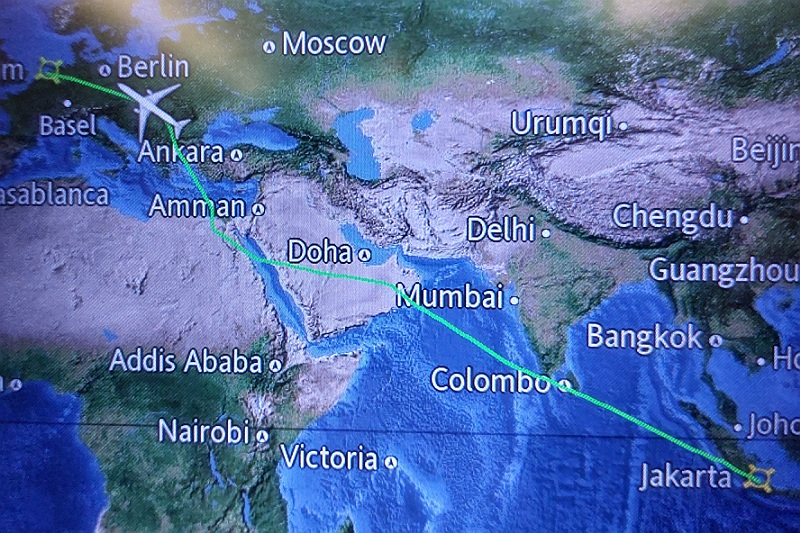 We zijn moe, voelen ons door het urenlang zitten stijfjes en hebben last van de jetlag.